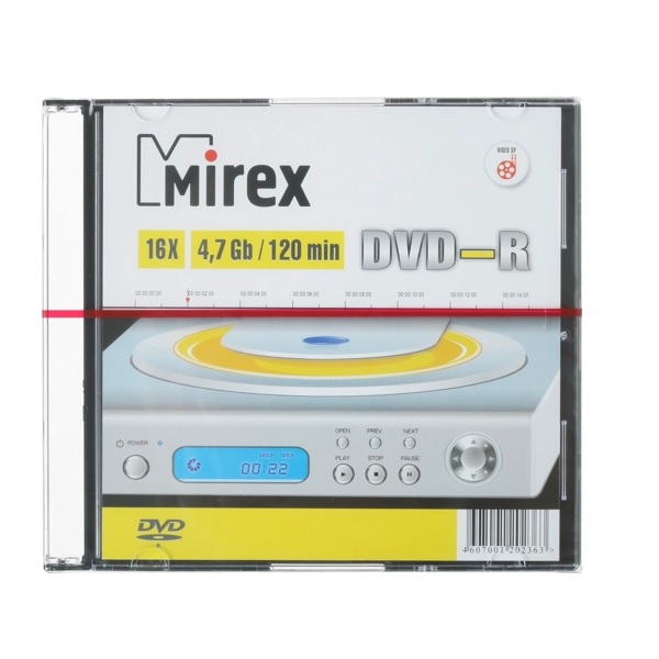 Диск DVD-R 4.7Gb, 16х, Slim Case, Mirex